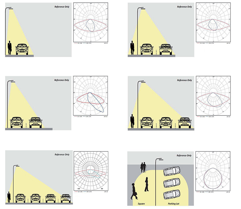 - توزیع نور نوع Ⅰ/Ⅱ/Ⅲ/Ⅳ/Ⅴ می تواند نیازهای مختلف روشنایی جاده را برآورده کند.