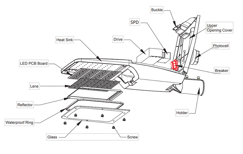 | در صورت درخواست موجود است | سازگار با خورشید، سوکت NEMA (3/5/7 پین)، سوکت ZHAGA، کلاهک کوتاه، فتوسل، سنسور حرکت، NTC، OLC، DALI Dimming | |||||||